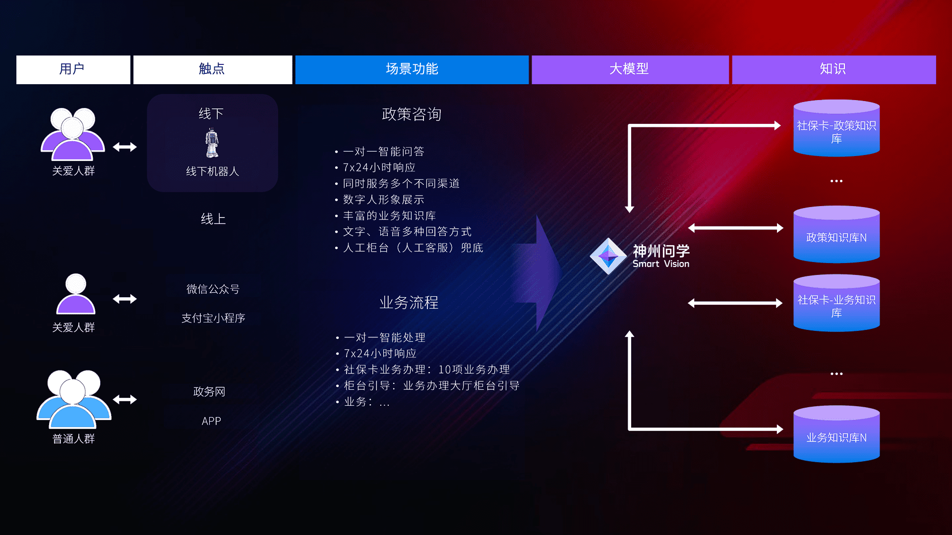 • 线上线下全覆盖:线上提供微信公众号、、、支付宝小程序、、政务网、、、app多种渠道,,与线下机器人形成完整服务体系。。。